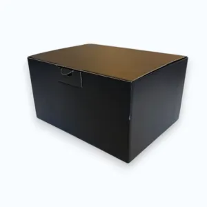 Czarny karton fasonowy z dnem zatrzaskowym (wymiary wewnętrzne: 207x158x111 mm). Idealne połączenie elegancji i solidnej ochrony dla średniej wielkości produktów.