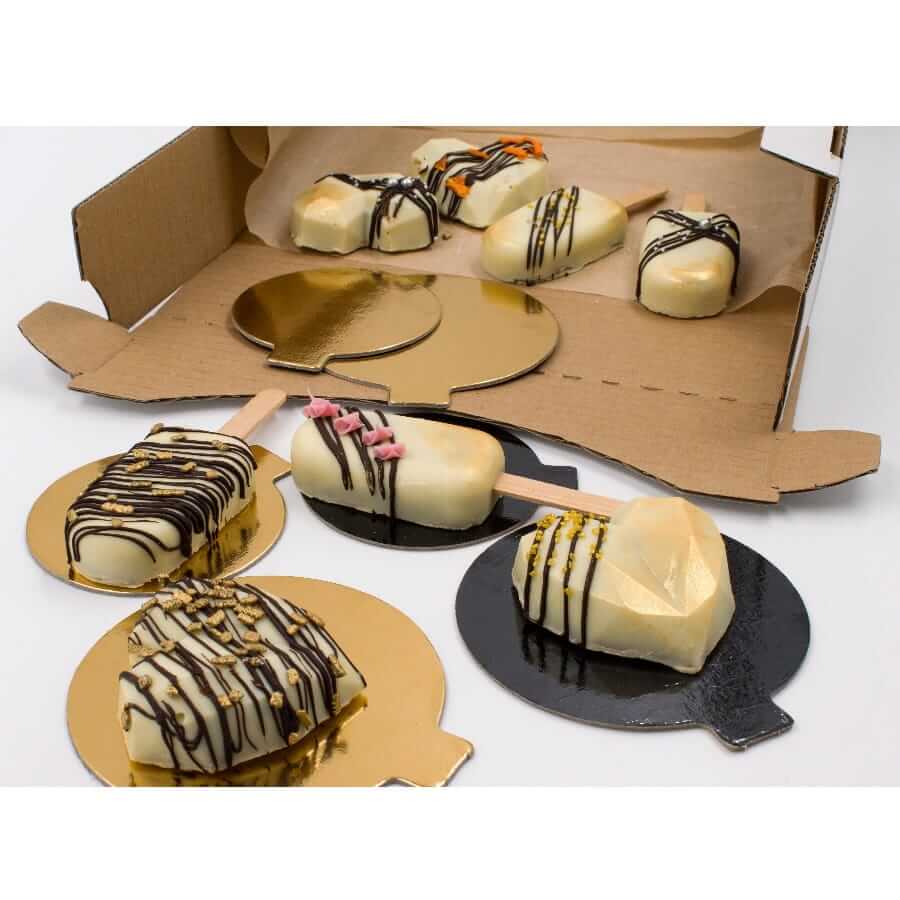 Eleganckie, dwustronne podkłady pod monoporcje (bankietówki) o powiększonej średnicy 10 cm. Złoto-czarna kolorystyka i sztywna lita tektura idealnie eksponują większe mini desery, zapewniając ich bezpieczne przenoszenie.