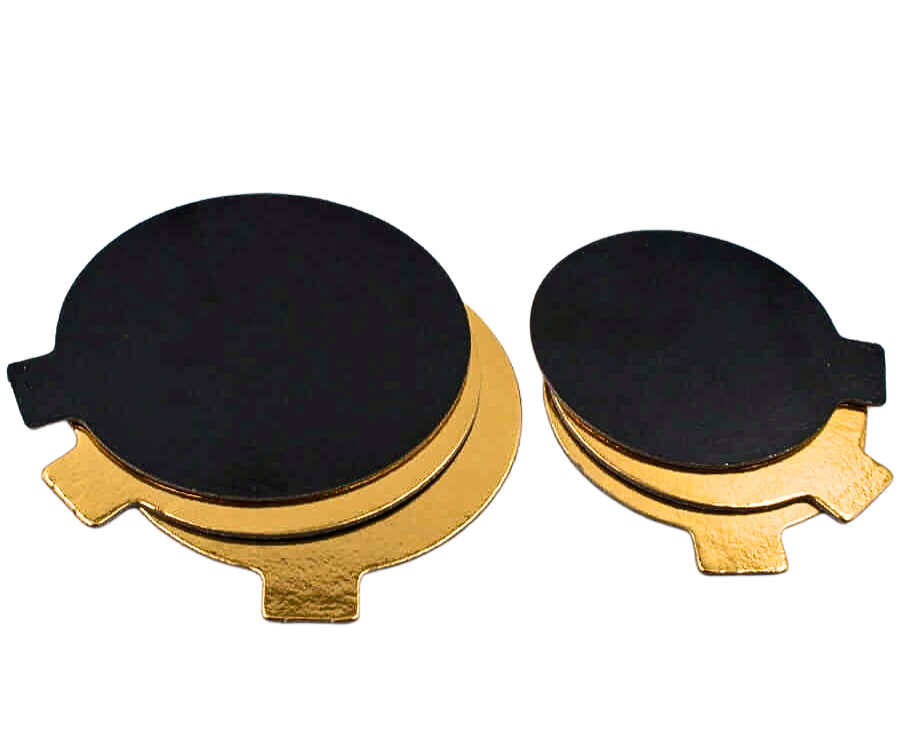 Podkład jest całkowicie dwustronny i obustronnie zabezpieczony powłoką. Możesz eksponować deser zarówno na złotej, jak i czarnej stronie, w zależności od tego, jaki kontrast wizualny z ciastkiem chcesz osiągnąć.