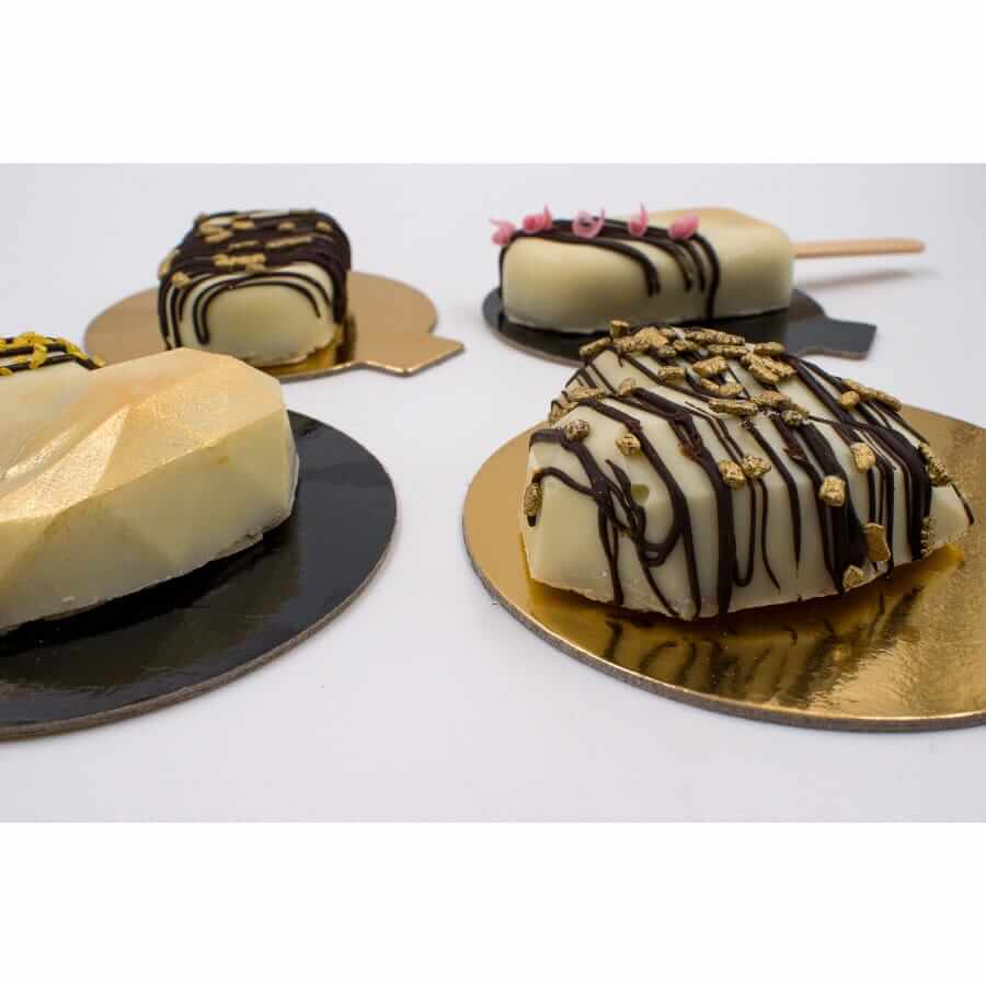 Wymiar 9x5 cm jest idealny do wszelkich podłużnych wypieków. Doskonale sprawdza się pod mini eklerki, ptysie w kształcie podłużnym, batony musowe, a także pod prostokątne, krojone kawałki tortów i ciast bankietowych.