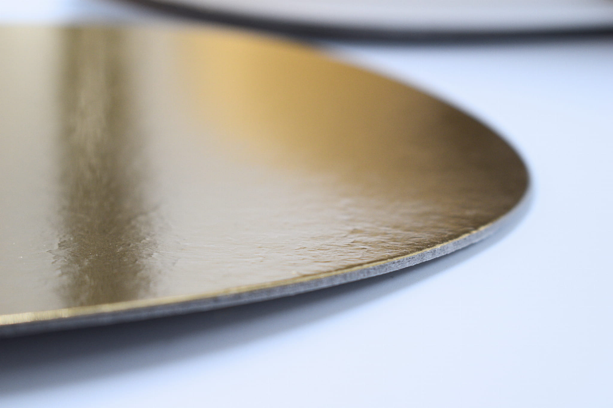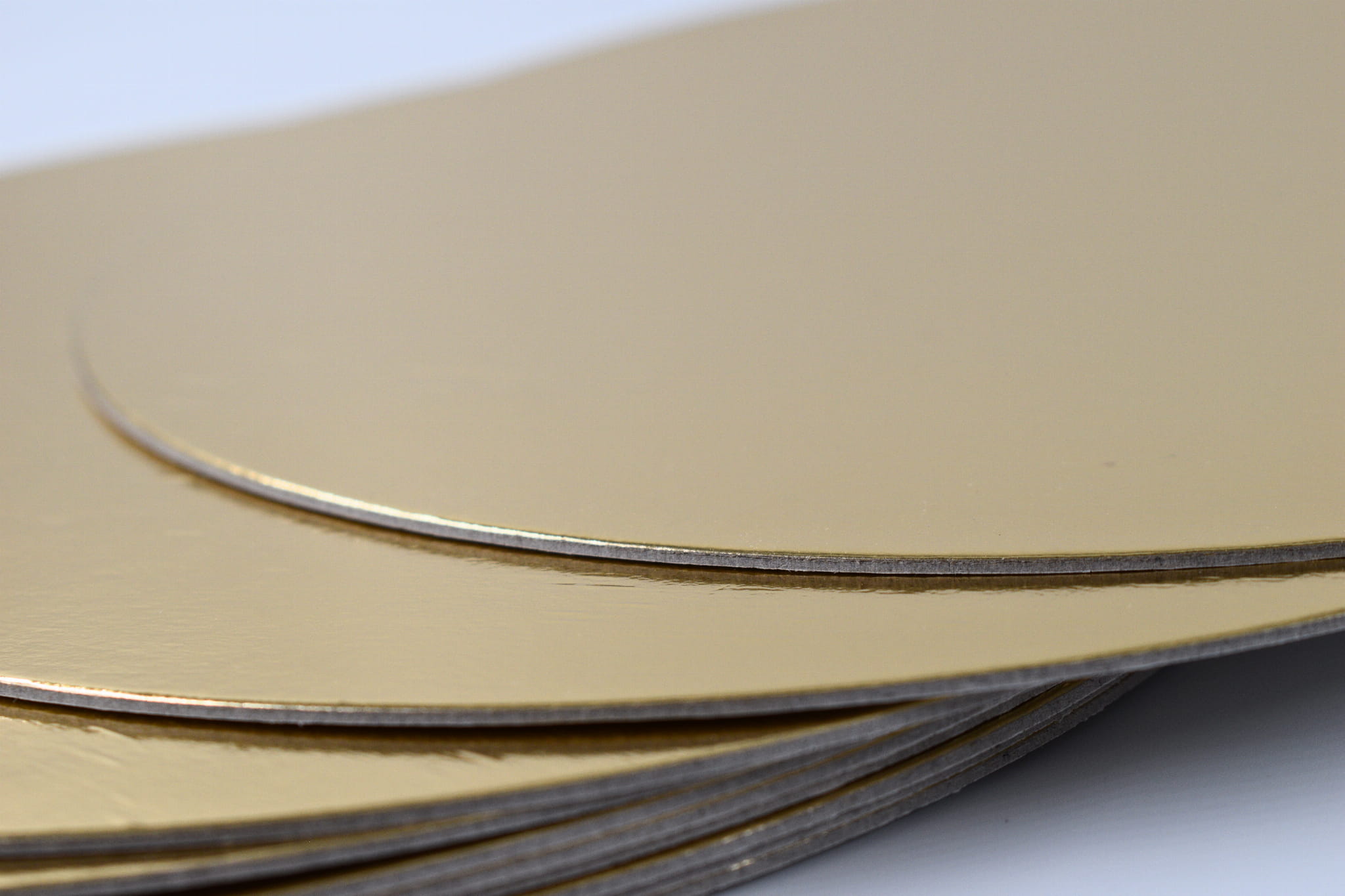 Lekkie podkłady pod tort o średnicy 28 cm i grubości ok. 1 mm. Wykonane z litej tektury o gramaturze 1050 g/m². Jednostronnie powlekane warstwą złotej folii odpornej na tłuszcz, z drugą stroną w kolorze naturalnej bieli. Idealne do standardowych tortów i lekkich ciast.